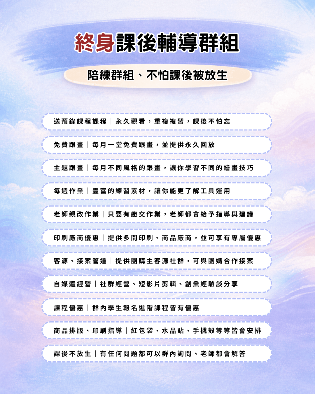 許多零基礎學員開始學畫,現在能接案、做貼圖、經營插畫品牌,重新找回自己的時間與價值。