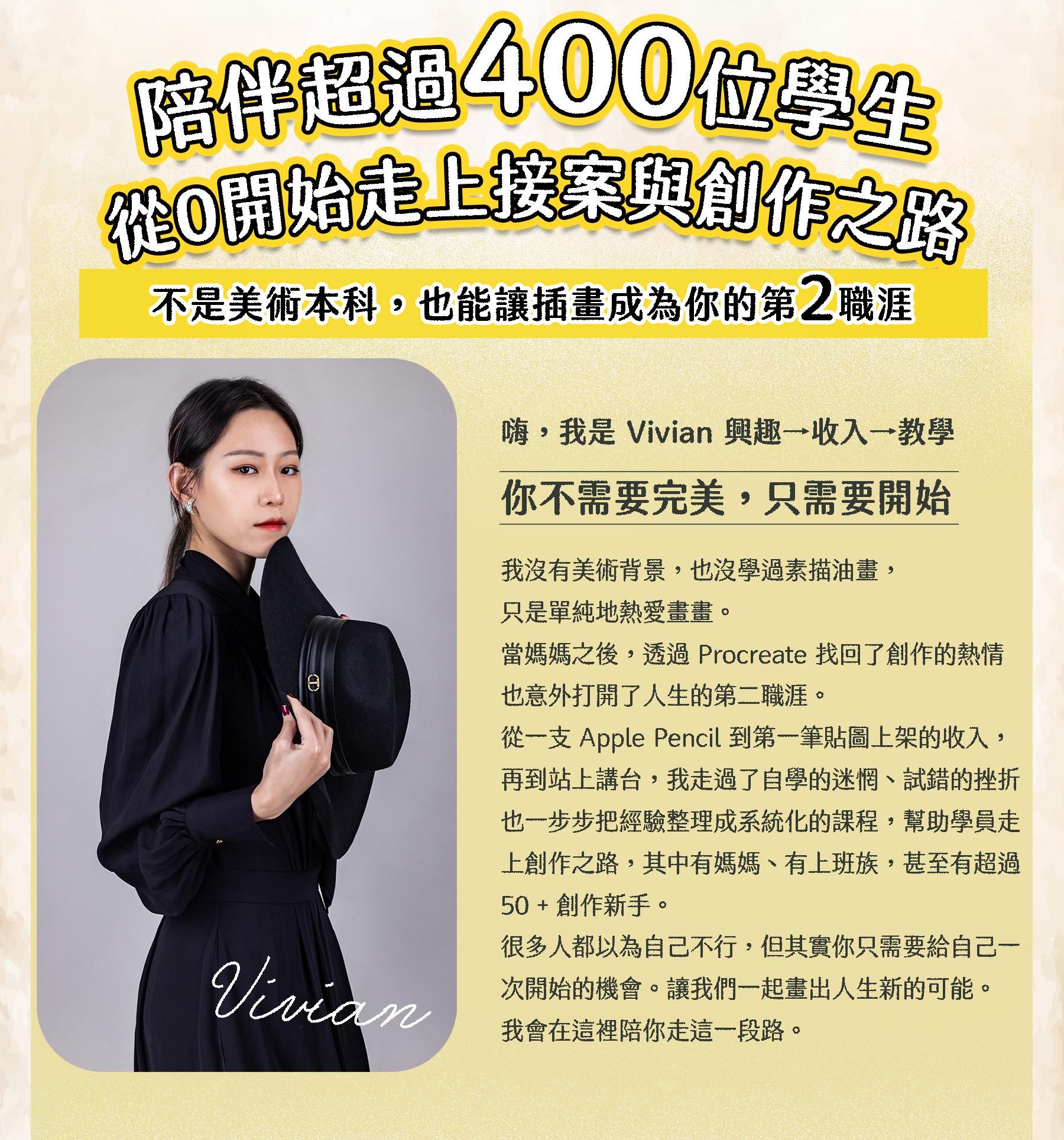 嗨,我是Vivian,一個非美術本科、沒有素描油畫背景,只因熱愛畫畫的全職媽媽。