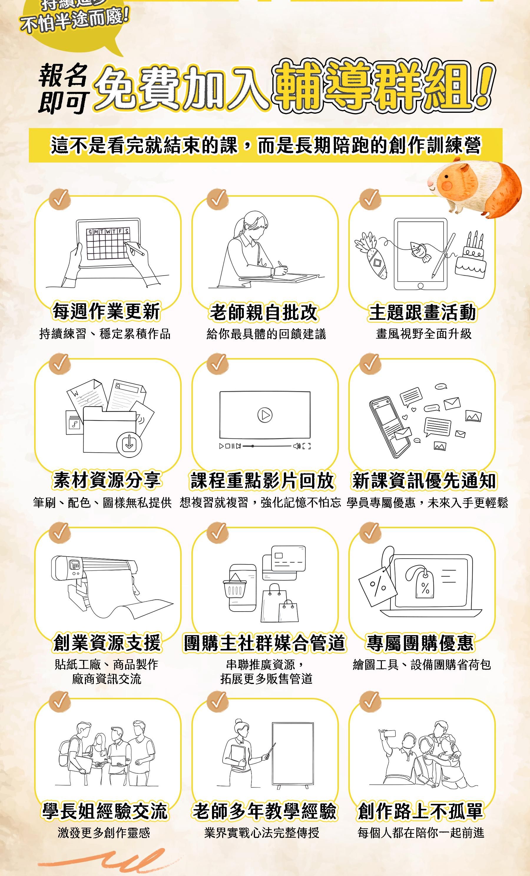 許多零基礎學員開始學畫,現在能接案、做貼圖、經營插畫品牌,重新找回自己的時間與價值。